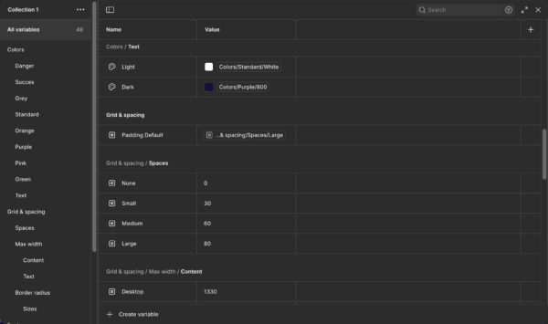 Voor ontwikkelaars is het eenvoudig om deze variabelen te koppelen aan CSS Custom Properties of een tokenbestand, waardoor Figma naar code converteren minder handwerk is.